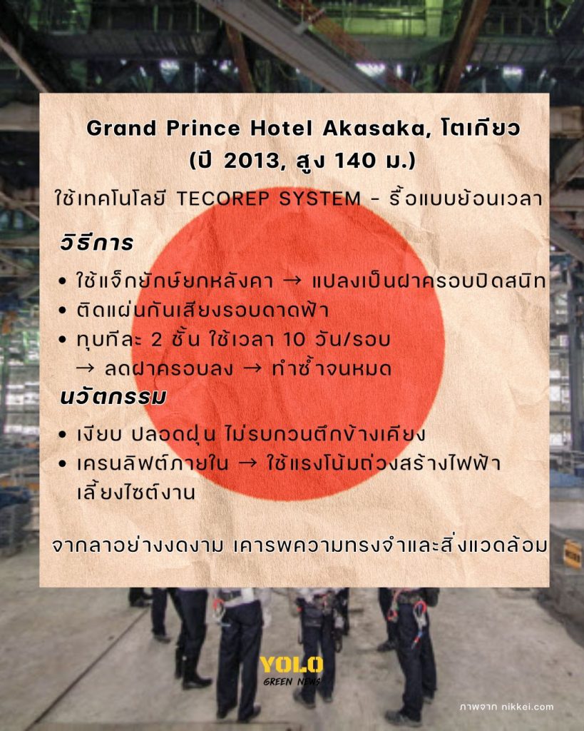 Grand Prince Hotel Akasaka, โตเกียว (ปี 2013, สูง 140 ม.) ใช้เทคโนโลยี TECOREP SYSTEM – “รื้อแบบย้อนเวลา”