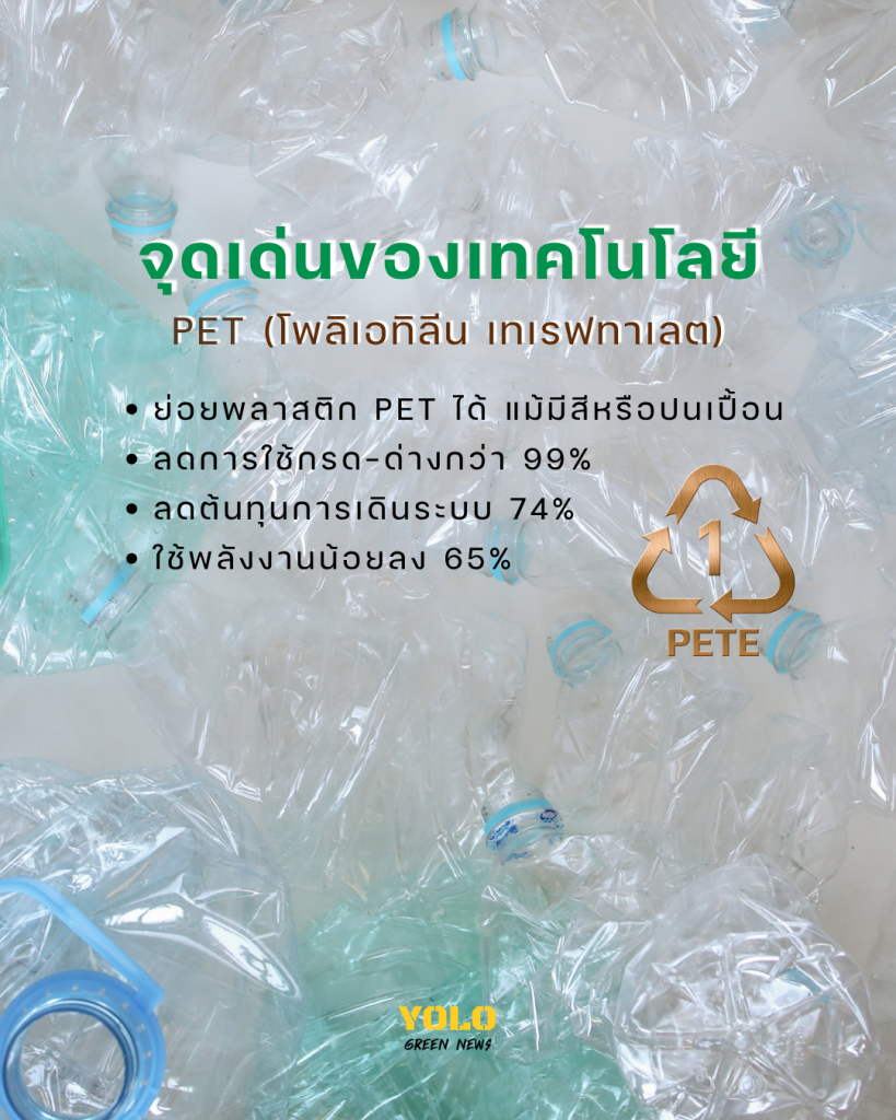 PET ที่ได้สามารถนำกลับมาผลิตพลาสติกใหม่ หรือแปรรูปเป็นวัสดุที่มีมูลค่าสูงขึ้นได้อีก
