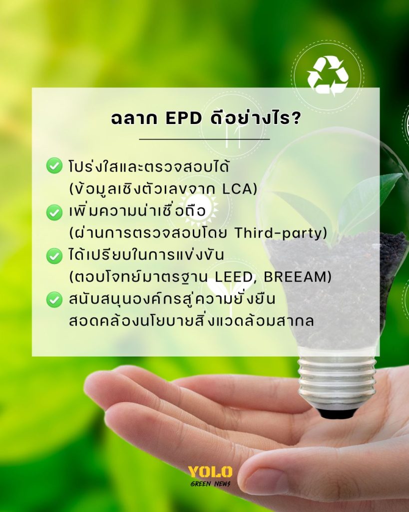 ฉลาก EPD จึงไม่เพียงช่วยยืนยันความใส่ใจสิ่งแวดล้อมขององค์กร แต่ยังเป็นกุญแจสำคัญสู่ความยั่งยืนและการแข่งขันในตลาดโลก