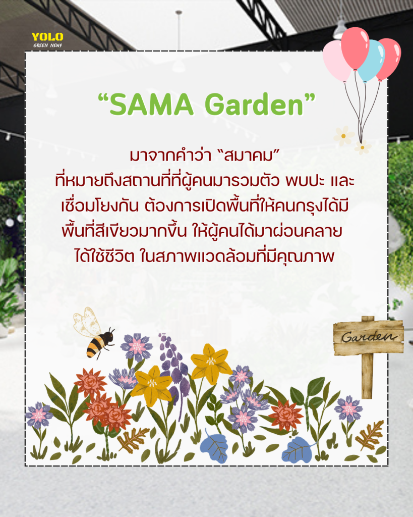 ที่สุดของชีวิตสายเขียว! SAMA Garden มาแล้ว เปิด 22 พ.ค. นี้ พื้นที่กว่า 11,000 ตร.ม. พร้อมกิจกรรมสีเขียวครบวงจร “SAMA Garden” เเห่งนี้ มีที่มาจากคำว่า “สมาคม” ที่หมายถึงสถานที่ที่ผู้คนมารวมตัว พบปะ และเชื่อมโยงกัน ซึ่งสะท้อนถึงเป้าหมายของโครงการได้อย่างชัดเจนที่ ภิรัชบุรีกรุ๊ป ต้องการเปิดพื้นที่ให้คนกรุงได้มีพื้นที่สีเขียวมากขึ้น ให้ผู้คนได้มาผ่อนคลาย ได้ใช้ชีวิตในสภาพแวดล้อมที่มีคุณภาพ ภายใน SAMA Garden เเบ่งออกเป็น 12 โซน หัวใจสำคัญของโครงการ คือการผลักดันและส่งเสริมผลิตภัณฑ์งานฝีมือคุณภาพสูงที่มาพร้อมดีไซน์ร่วมสมัยจากผู้ประกอบการที่มีความตั้งใจและใส่ใจในทุกกระบวนการผลิต ทั้งจากประเทศไทยและต่างประเทศ โดยภายในพื้นที่ ได้รวบรวมสินค้าและผลิตภัณฑ์จากแบรนด์มากกว่า 70 ราย ให้ผู้มาเยือนได้เลือกสรรตามไลฟ์สไตล์ของตนเอง การเดินทาง ก็สะดวกสบายเช่นเดียวกับแนวคิดของโครงการ ที่ผู้ใช้รถยนต์สามารถเดินทางมาด้วยรถยนต์ส่วนตัวจอดรถชั้นใต้ดิน อาคารไบเทคบุรี เเละสามารถใช้บริการรถไฟฟ้า BTS ลงสถานีบางนา ทางออก 1 และเดินตามทางเชื่อมเข้าสู่ SAMA Garden ค่ะ